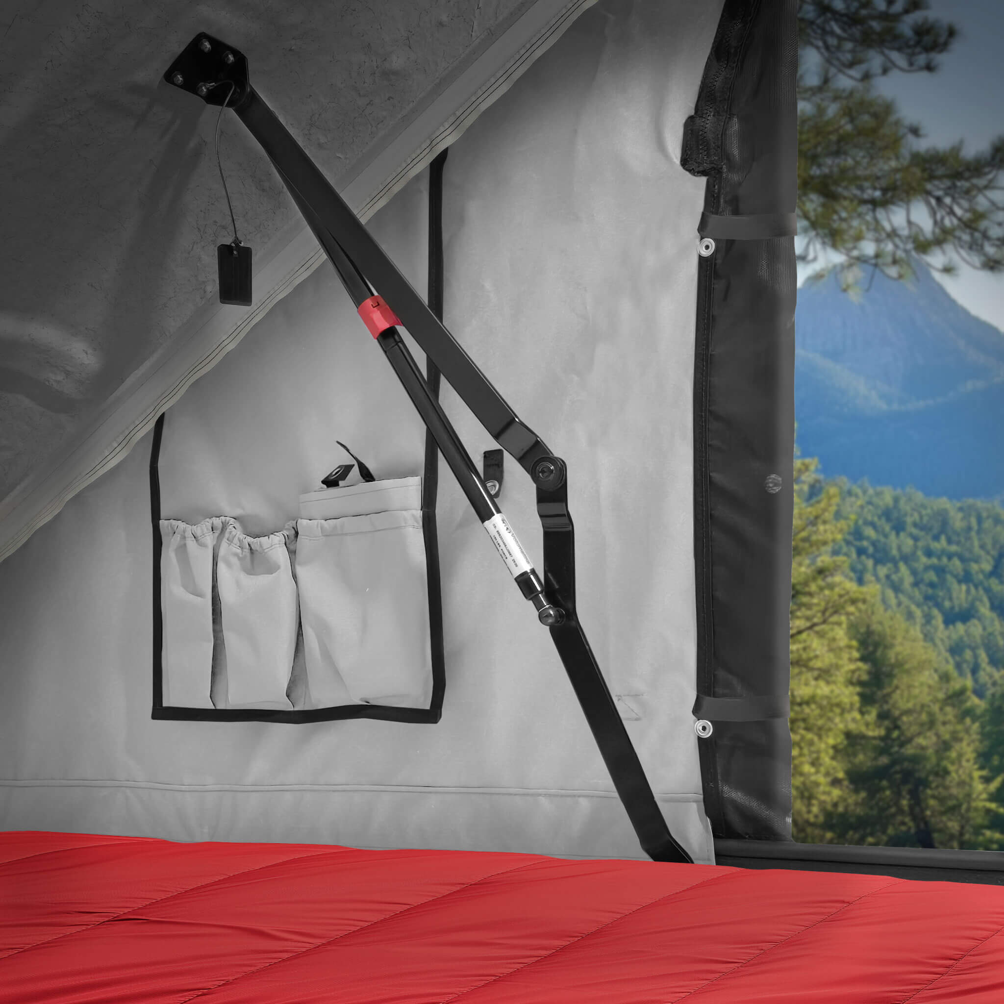 The Roost roof top tent is engineered for compatibility with most aftermarket roof rack systems, such as Thule, Yakima, or Rhino Rack. It features two corrosion-resistant galvanized runners that span the entire length of the tent shell's underside.Included are four galvanized steel brackets that can be positioned along the runners to match any crossbar spread, providing a secure fit at four points. This setup ensures a solid and stable attachment to the roof rack, all easily adjustable with standard tools for a quick and hassle-free installation.